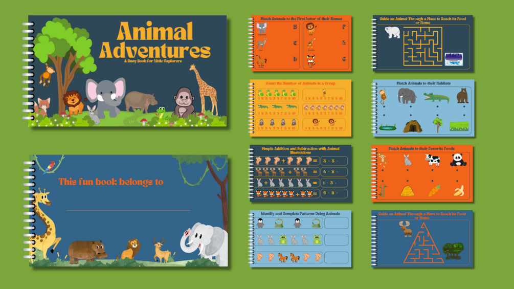 Unleash your child's imagination and learning with our vibrant and engaging Animal Busy Book! Specially designed for little explorers, this interactive book offers a world of fun and education, right at their fingertips.